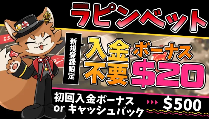 ラピンベット(LapinBet)$20入金不要ボーナス/$500入金ボーナスと出金条件【2025最新情報】