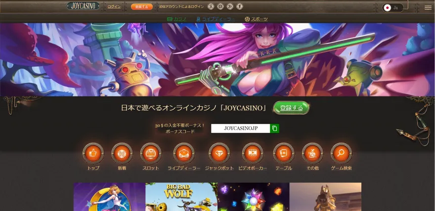 ジョイカジノは閉鎖されました。以降、入金不要ボーナスの受取もできません。他社オンラインカジノの入金不要ボーナスもぜひチェックしてください。