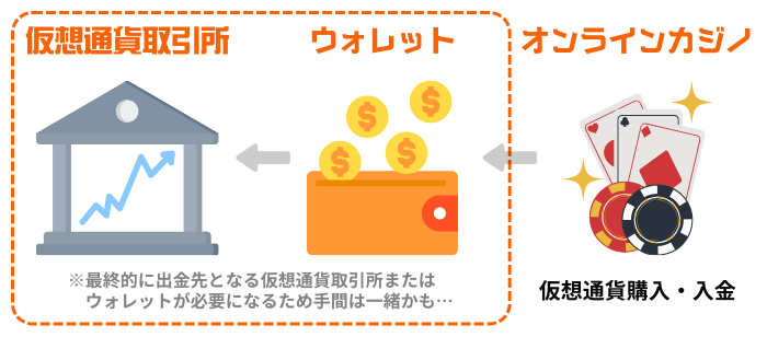 - 仮想通貨取引所に口座を開設し直接オンカジで利用する方法